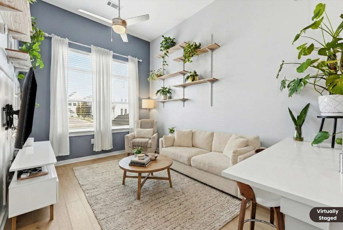Experience modern comfort and unbeatable walkability in one of Nashville’s most vibrant neighborhoods—The Nations. This first- floor condo is thoughtfully designed for easy living, with 15- foot ceilings, oversized windows that flood the space with light, and sleek quartz countertops that bring a touch of luxury to everyday life.