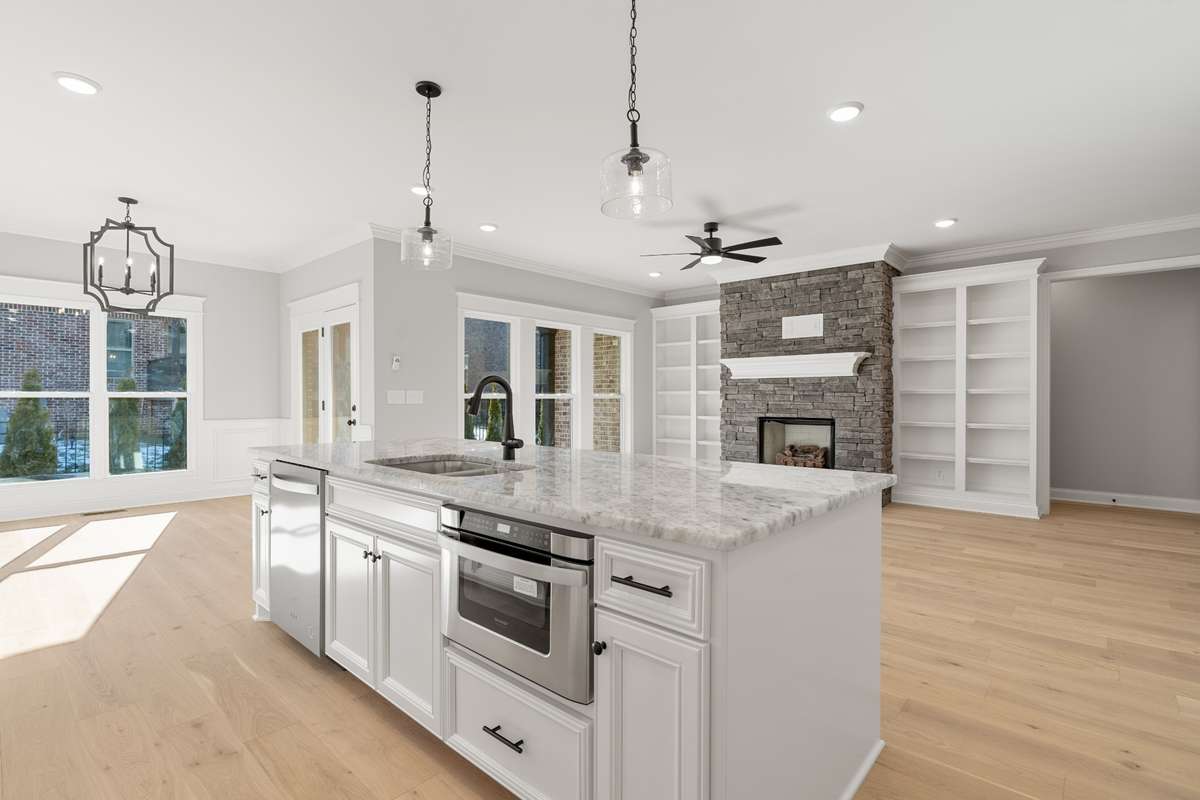Exceptional Quality Construction by Eastland Construction Inc. $ 10, 000 toward closing cost and/ or rate buy down with Preferred Lender. Section 2 Now Open! Belmont floor plan, Living rm w/ Hardwood Floors, Built- Ins, & Stone fireplace. Kitchen w/ Granite Countertops, Custom Maple Cabinets, Tile Backsplash, Hardwood Floors, Pantry, Microwave, and Dishwasher, Primary BR on Main Level with Large Bath w/ Separate Shower and Large Tub, Double Vanities, & Granite Tops, Tile in Baths and Full Utility Rm, Formal Dining or Formal Office, Media Room and 20x19 Rec Rm w/ pre- wired Surround Sound, Covered Back porch, Excellent Quality and Features Throughout Home!