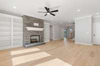 Exceptional Quality Construction by Eastland Construction Inc. $ 10, 000 toward closing cost and/ or rate buy down with Preferred Lender. Section 2 Now Open! Belmont floor plan, Living rm w/ Hardwood Floors, Built- Ins, & Stone fireplace. Kitchen w/ Granite Countertops, Custom Maple Cabinets, Tile Backsplash, Hardwood Floors, Pantry, Microwave, and Dishwasher, Primary BR on Main Level with Large Bath w/ Separate Shower and Large Tub, Double Vanities, & Granite Tops, Tile in Baths and Full Utility Rm, Formal Dining or Formal Office, Media Room and 20x19 Rec Rm w/ pre- wired Surround Sound, Covered Back porch, Excellent Quality and Features Throughout Home!