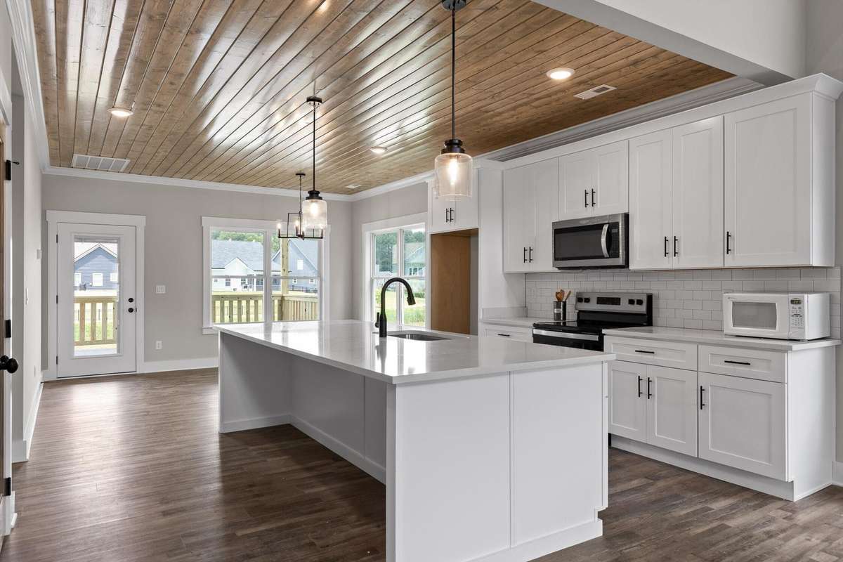 $ 10, 000 in Seller Concessions now being offered. Find your perfect haven in this impressive new construction home, showcasing a well- designed floor plan. The primary bedroom, located on the main level, features a vaulted ceiling and an en- suite with a rejuvenating soaking tub and a generous tile shower. The kitchen with a tongue and groove ceiling is ideal for cooking and entertaining, with a spacious island, ample cabinetry, and a pantry. Upstairs, you' ll discover three comfortable bedrooms and two full baths, while the outdoor concrete porch provides a relaxing spot to enjoy the community pond views. Don' t miss out on living in this community that' s convenient to shopping and dining. Heritage School Zone