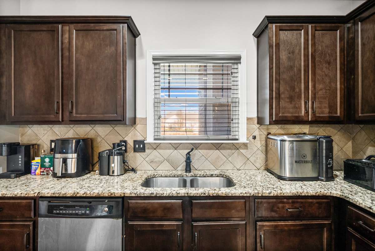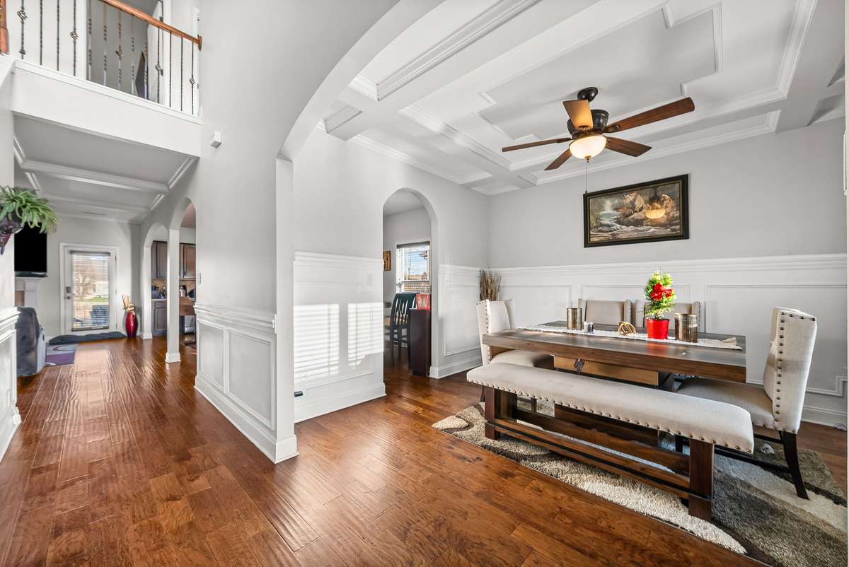 Welcome to 3385 Wiser Dr. , an elegant 5- bedroom, 3- bath home that blends timeless style with thoughtful design. Step inside to a grand foyer that sets the stage for the formal dining room, complete with coffered ceilings and refined trim work. The gourmet kitchen is a chef’s delight, offering granite countertops, a tile backsplash, double ovens, a 5- burner cooktop, stainless steel appliances, and a generous eat- in area.