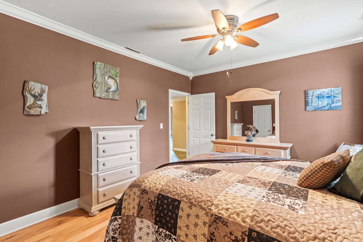 Lakeside living at its finest for those who want to relax and play. This stunning 4- bedroom, 3, 408- square- foot home nestled on 1. 73 fenced in acres of serene lakefront property on Big Creek Lake. Thoughtfully designed for all who love nature and comfort. Step inside to a warm and inviting living room featuring a striking stone fireplace and beautiful wooden soaring ceilings surrounded by windows to enjoy the views of the lake. The spacious layout includes a separate dining room and a chef- ready kitchen accented with granite, new appliances featuring an b/ in oven, microwave, warmer & pantry. The main- level master suite is a true retreat, offering an en suite bath and an oversized, luxury suite- style closet and direct access to the deck to enjoy the lake views from. Other touches throughout the home, trey ceilings and vaulted ceilings add architectural elegance with hardwood & tile. Stepping downstairs to the walk out basement level you will find a large den with its own fireplace that opens to a walk- out patio—perfect for entertaining or enjoying quiet evenings by the water. A generous deck off of the main level overlooking the lake provides additional outdoor living space with breathtaking views. You can watch the family playing or fishing and wildlife out on the water from the main deck, another small grilling deck is located just off of the kitchen for easy access. This property also includes a oversized detached three- car garage/ boat room - heat & cooled, tool room & complete with a finished office and a large attic for ample storage and its own private covered patio area. . Enjoy direct access to the water from your private dock, making lakeside recreation effortless. A rare combination of space, craftsmanship, and waterfront beauty—this home offers the ultimate lakefront lifestyle. This home would also make a fantastic investment property as a possible Airbnb. With the many amenities in the area including State parks and OHV trails, driving range and much more!