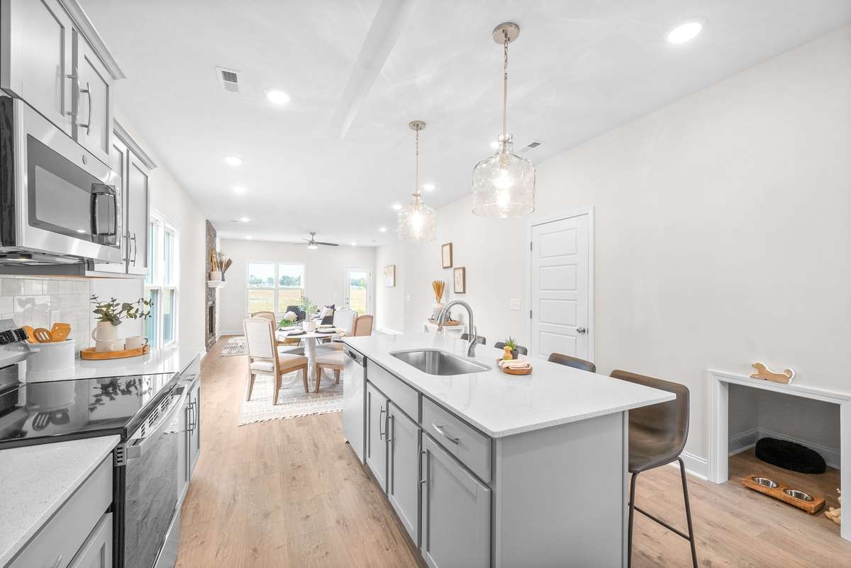 Hawkins Homes is offering $ 15, 000 towards buyer incentives + 1% with lending partner. New construction that is more than move in ready! Buyer has the opportunity to select their preferred kitchen backsplash tile and front door color! Plus, Hawkins Homes is offering an incredible $ 15, 000 buyer incentive! This stunning home features an open- concept great room, kitchen, and dining area with the primary suite conveniently located on the main level. Enjoy a floor- to- ceiling stone/ brick fireplace in the great room, an island kitchen with elegant pendant lighting, and granite countertops. The primary suite boasts a tray ceiling and a spacious walk- in closet. Upstairs, you’ll find two additional bedrooms, a full bathroom, and a linen closet. Step outside to your covered outdoor living space—perfect for entertaining. This home also comes with a fenced- in yard already installed for added privacy and convenience. Additional features include a smart garage door and other signature upgrades!* Photos are of previous build - colors, features, upgrades, layout, selections may vary!