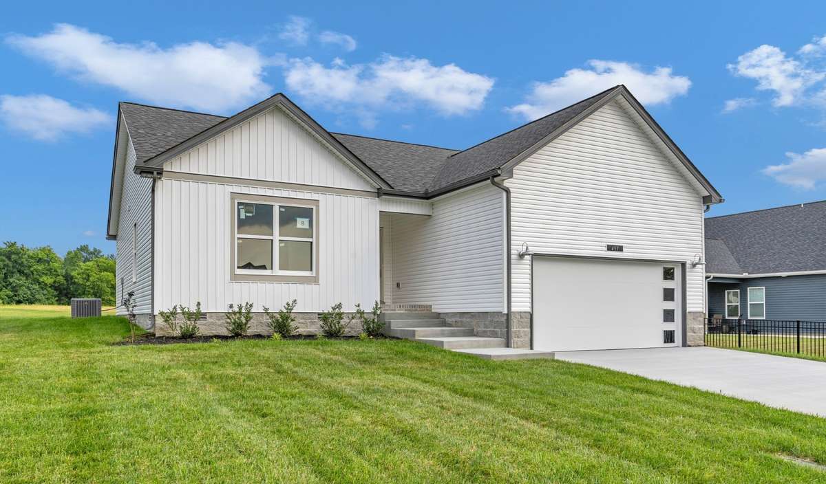 Seller offering $ 15, 000 in buyer incentives! Buyer still has the opportunity to add personal touches to this under- construction home by selecting the kitchen backsplash tile and front door color! This functional ranch- style layout offers an open- concept kitchen and dining area that flows into a spacious living room. The great room features 10- foot ceilings and a stunning floor- to- ceiling stone or brick fireplace. The primary suite includes a tray ceiling and a sliding barn door that opens to a beautifully designed bathroom with a showcase tile shower. * Photos are of previous build - colors, upgrades, features, selections, layout, etc may vary1