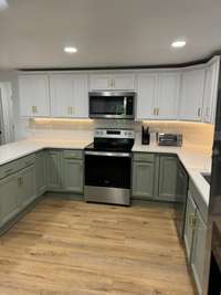 Step inside to an elegant, like- new interior where the open- concept layout creates a warm, seamless flow. The luxury kitchen—featuring quartz countertops, undermount sink, soft- close custom cabinets, and all nearly new appliances—opens directly into the living room, making the space perfect for entertaining, relaxing, and everyday living. Natural light pours through the home, enhancing the spacious, welcoming feel.