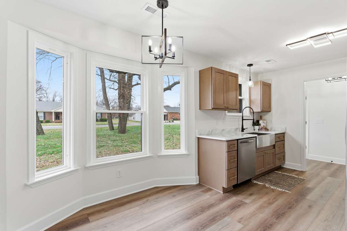 Just 20 minutes from Downtown Nashville, this fully renovated Goodlettsville gem has been taken down to the studs and rebuilt with high- end finishes throughout! Enjoy brand- new flooring ( zero carpet!) , fresh paint, new windows, new roof, new exterior trim, new HVAC, tankless water heater, upgraded fixtures, and gorgeous designer bathrooms. The spacious living room features a gas fireplace, and the eat- in kitchen shines with stainless steel appliances, farmhouse sink, granite countertops, new soft- close cabinetry, and modern style top to bottom. The primary suite offers a walk- in closet, while the secondary bedrooms are generous in size with oversized closets. Outside, enjoy the covered front porch with tongue- and- groove ceiling and wood posts, plus a new garage door and epoxy- finished garage floor. Sitting on a quiet cul- de- sac lot, this home is move- in ready, a rare find, and best of all—NO HOA! Pre- Inspection Completed and Clear Termite Letter on file!