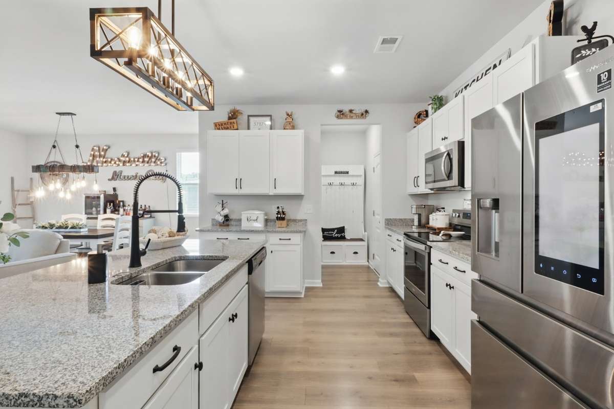 Price Reduced! Beautiful 4BR/ 3BA home in desirable Hampton Springs, minutes from Towhee Club golf course. Better than new condition! This home was built on a premium lot only 4 years ago. The main level primary suite offers comfort and convenience, while upstairs features 3 additional bedrooms and a spacious bonus room. The open floorplan includes a modern kitchen with quartz countertops with high end appliances. LED lighting throughout home. The open living space and dining area with natural light makes it perfect for entertaining and daily living. This home has been insulated as well for effective sound absorption. The partially finished walk out basement adds 1, 279 sq ft with bathroom hookup which is perfect for customizing to fit your needs, in law suite, game room or studio. Enjoy your private backyard that backs to a peaceful creek for added privacy and relaxation. Conveniently located near Triple Battle Creek schools, I- 65, and Coming soon the new Spring Hill Towne Crossing shopping center. You won' t want to miss out on this rare beauty!