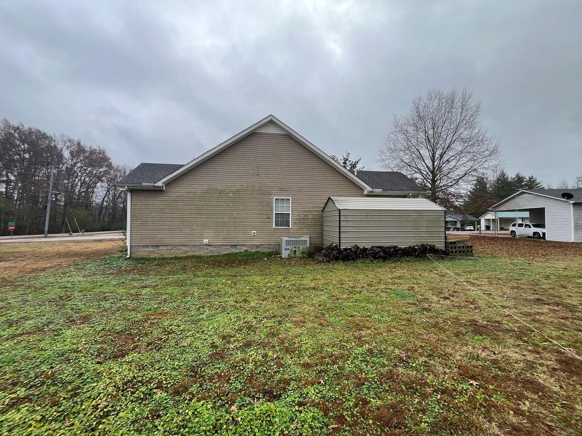 This 3 bed/ 2 bath home offers 1, 647 sq. ft. of living space on a 1 acre lot. The kitchen has wooden cabinets and laminate countertops, and the living room includes a fireplace. The master bedroom features a private bath and walk- in closet, while other bedrooms offer custom cabinetry. Exterior highlights include a side- entry 2- car garage, open back patio needing repair, and a storage shed.