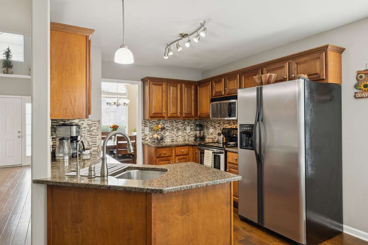 Welcome to this delightful 3- bedroom, 2. 5- bath home in Golf View Estates featuring a main- level master with his- and- hers vanities and an expansive vaulted ceiling in the living room that invites in quality natural light. Enjoy the granite countertop in the kitchen that expands to overlook the lovely breakfast nook! The newly updated roof ( 3 years old) gives you peace of mind. Upstairs offers a versatile bonus room ideal for a nursery, media space, or a large home office. Outdoors, enjoy a private fenced backyard bordered by trees and a back patio perfect for your morning coffee or relaxed evenings. Located just 3 miles from the new Spring Hill Town Center and Publix, this home balances convenience, comfort, and style.