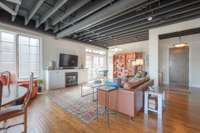 Inside, you’ll find a stylish kitchen with tile backsplash, plus a granite fireplace mantel adding a touch of luxury. A built- in Murphy bed provides flexible use of space for guests or a home office. The home’s modern finishes and abundant natural light complement its unmatched walkability.