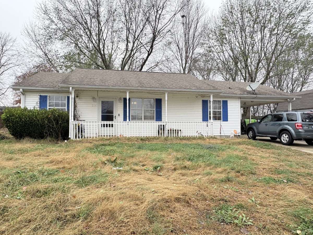 Perfect starter home or investment. This awesome ranch style house features great spaces both inside and out starting with an amazing covered porch running almost the entire length of the house. Updated laminate flooring flows from the spacious living room into a dining room large enough to easily accommodate a full size dinette nicely. The oversized 13x12 master bedroom includes a walk through closet and en- suite bath. Outside, a gated walkway opens up into the huge fully fenced backyard displaying a wonderful park like setting, complete with a fire pit area, and including a massive party deck with a built in pergola. Attached carport with storage room. No HOA! Close to Fort Campbell. If you are not afraid to do some small cosmetic enhancements to save big on price, then this is the opportunity you have been looking for! Schedule your showing now.