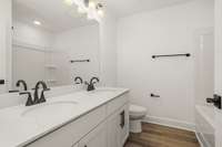 Upstairs, unwind in the Primary Suite complete with double sinks, quartz countertops, and a tiled shower. A 2- car garage adds convenience and extra storage.