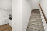 Step into this beautifully crafted 4 Bed / 3. 5 Bath “Kimberly” townhome featuring 9’ ceilings, 8’ doors, and an open- concept floor plan that’s equal parts stylish and functional. The kitchen is the heart of the home, showcasing white cabinetry, quartz countertops, stainless steel appliances, and a large island perfect for gatherings and fall festivities.
