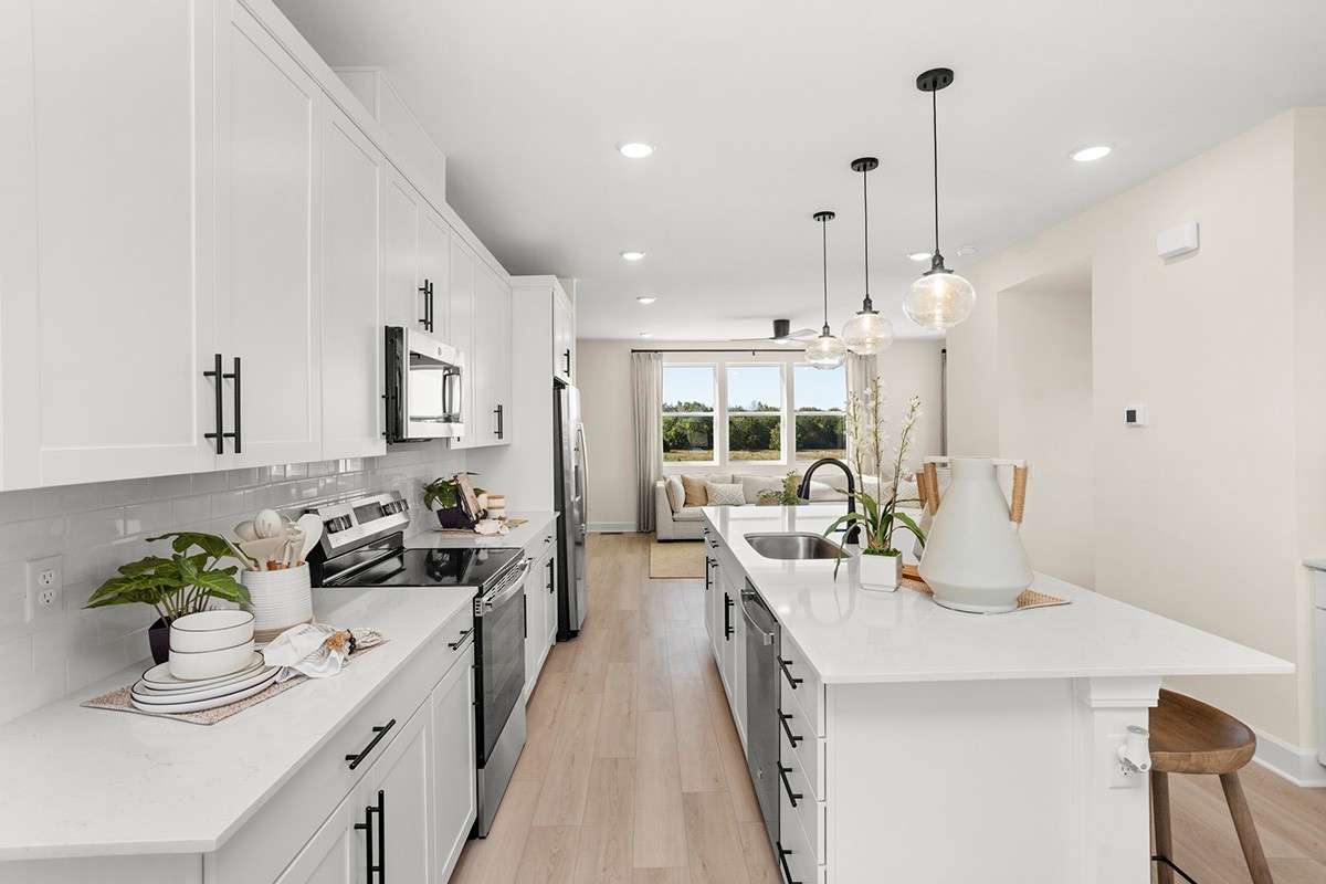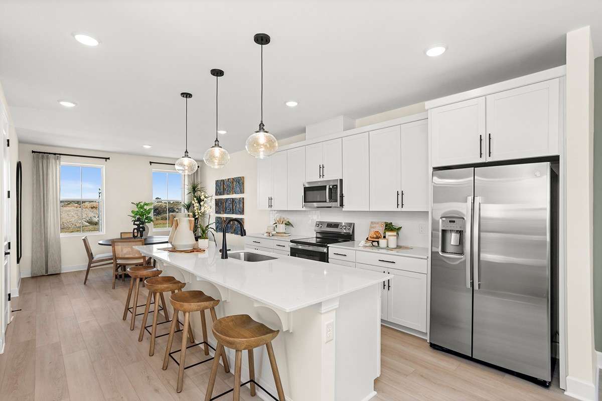 THE BEST DEAL IN BARTON VILLAGE!! ! LIVE And PLAY!! ! HOA paid by seller for one year! BRAND NEW Community! ! The Crossings at Barton Village by Richmond American Homes, where upgraded finishes come standard with every townhome! Enjoy effortless living in this beautifully designed 4 Bed / 3. 5 Bath " Kimberly" townhouse that features 9' ceilings throughout with 8' DOORS and an open concept layout that feels both spacious and inviting. Cook and entertain in the modern kitchen with white cabinetry, quartz countertops, stainless steel appliances, and a LARGE island that flows seamlessly into the living and dining areas. The Primary Bathroom includes double sinks with quartz countertops and a tile shower. 2- car garage is included with this townhome, perfect for additional parking and storage. Lot 9