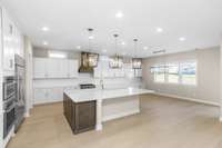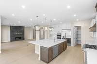 At the heart of the home, the gourmet kitchen—with oversized island, Monogram stainless appliances, and abundant storage—sets the stage for holiday entertaining. The living area extends to a covered porch through dramatic slide- away glass doors, creating seamless indoor- outdoor celebrations.