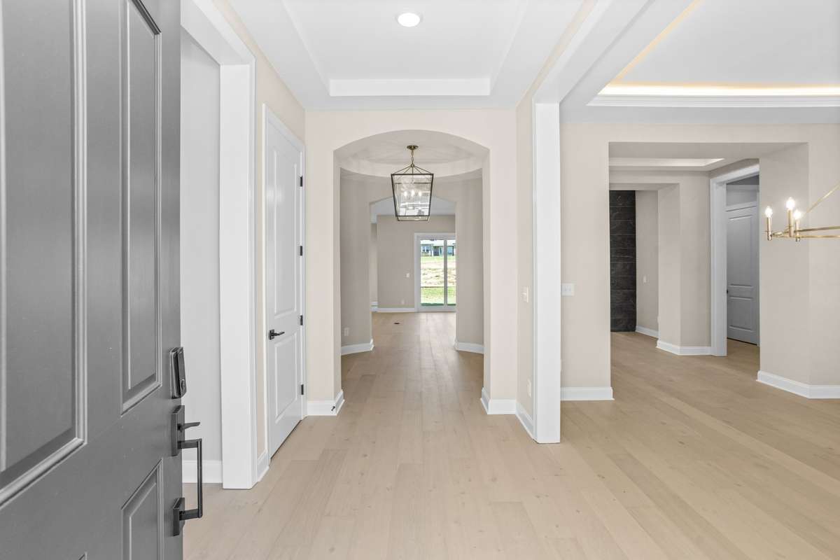 Celebrate the holidays in timeless style with the Henley plan, offering nearly all one- level living and the feel of a custom estate. Backed by a mature tree line, this home provides cozy privacy perfect for winter mornings or festive gatherings.