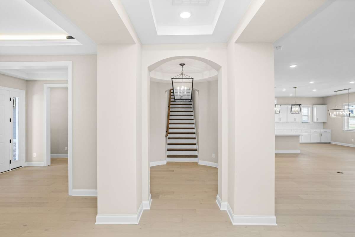 Celebrate the holidays in timeless style with the Henley plan, offering nearly all one- level living and the feel of a custom estate. Backed by a mature tree line, this home provides cozy privacy perfect for winter mornings or festive gatherings.