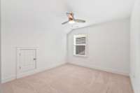 Outdoor living includes a screened- in back porch, a newly added deck, and a backyard finished with low- maintenance goat turf artificial grass. The home is one of the few in the neighborhood with a backyard that backs up to woods, offering added privacy.