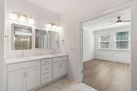 Low maintenance, turf back yard with screened porch and garden beds make this 3- bedroom, 2. 5- bath Hadley plan by Crescent Homes an easy transition to become your new home. The comfortable, functional layout includes the primary bedroom on the main level. Built in 2021, the home features an open- concept living space with a two- story foyer, upgraded lighting, a gas fireplace, and a kitchen with a farm- style sink. Upstairs includes a flexible loft that works well as a second living area, office, or play space.