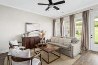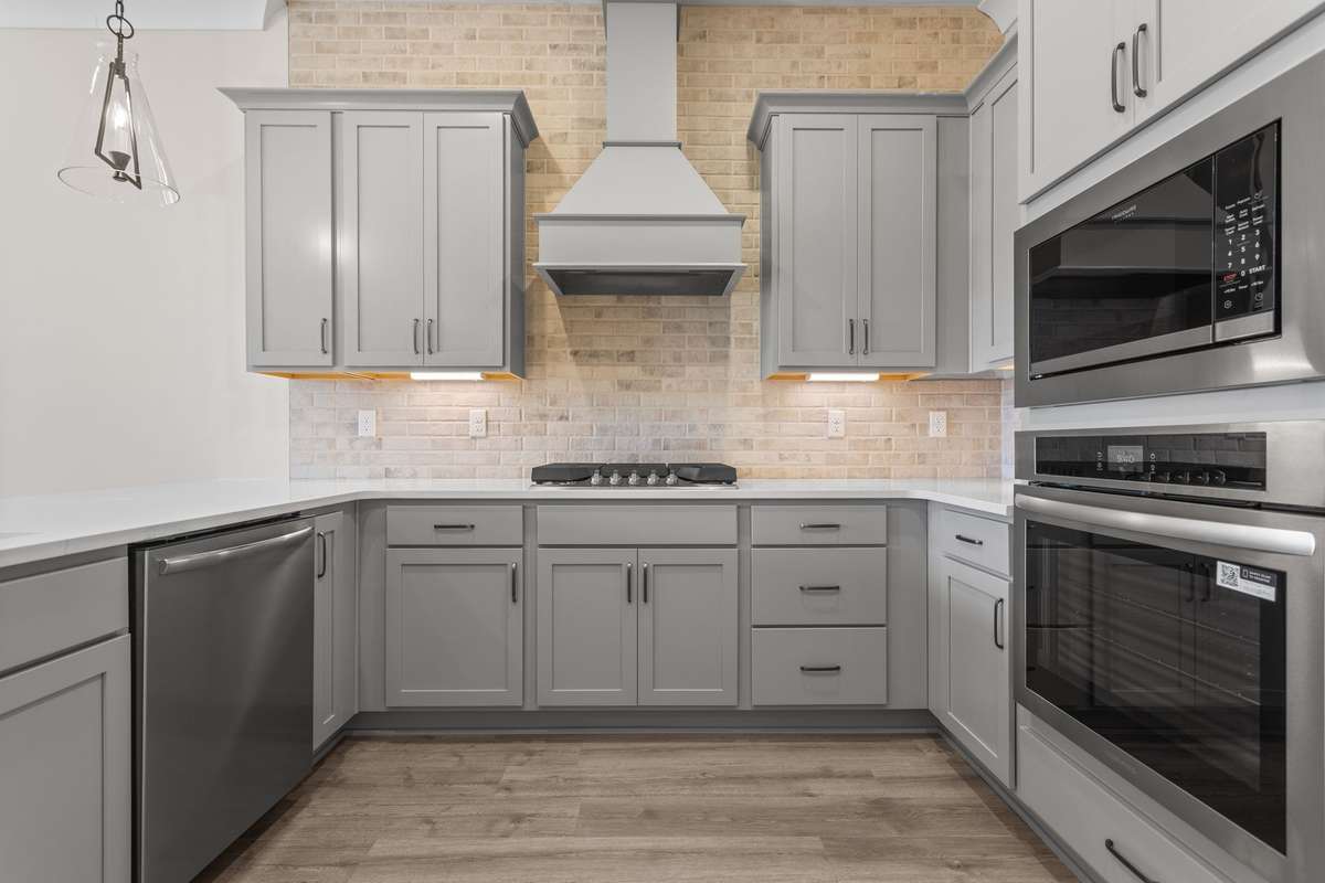LOT 40 is beautiful Harpeth floorplan with a Media Room. The Harpeth is a designed ranch- style upstairs PLUS a finished daylight walk- out basement that adds both space and versatility. The lower level includes a spacious bedroom with a full bath, a large recreation room, and a dedicated media room—perfect for movie nights, entertaining guests, or even serving as an expansive and secure storm shelter, as it’s completely underground. On the main level, you' ll find a flexible bonus room that can be tailored to your needs—ideal as a home office, formal dining room, or creative space. Soaring 10- foot ceilings and elegant 8- foot doors throughout the home exude a sense of luxury and openness. High- end finishes abound, including quartz countertops, under- cabinet lighting, a pull- out trash drawer, stylish pendant lights, a deep single- bowl composite sink, a gas cooktop, and built- in wall oven and microwave. Hardwood floors run throughout the main level, and ceiling fans add comfort and style to each room. The thoughtfully designed laundry room makes an everyday task more enjoyable, featuring base cabinets for storage and plenty of space to stay organized. The generous primary suite offers a serene retreat with a walk- in shower, large walk- in closet, linen closet, and a separate toilet room for added privacy. Outdoor living is just as impressive, with two spacious covered back porches that invite you to enjoy your morning coffee while watching the sunrise, or relax in the evening with the sunset from your charming southern- style front porch. Finished in striking black- and- white cottage- style exteriors, The Harpeth stands out as a unique and stylish home—offering luxury, comfort, and function all in one.