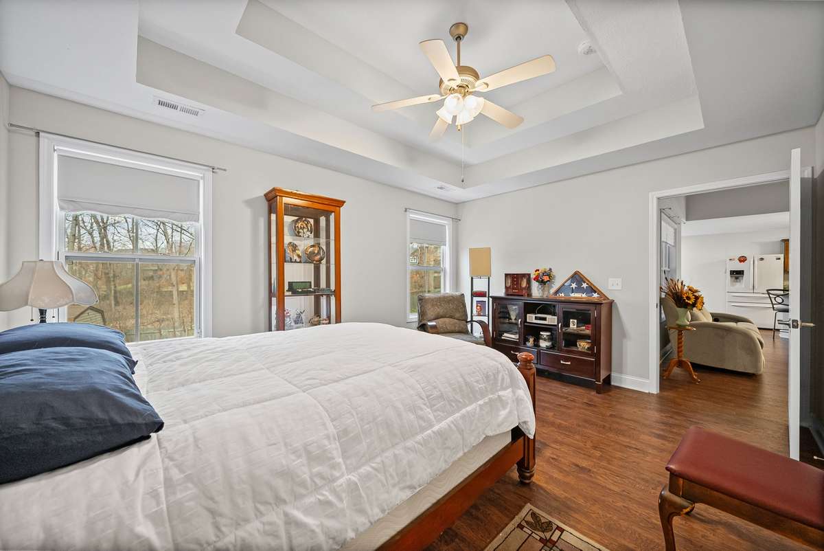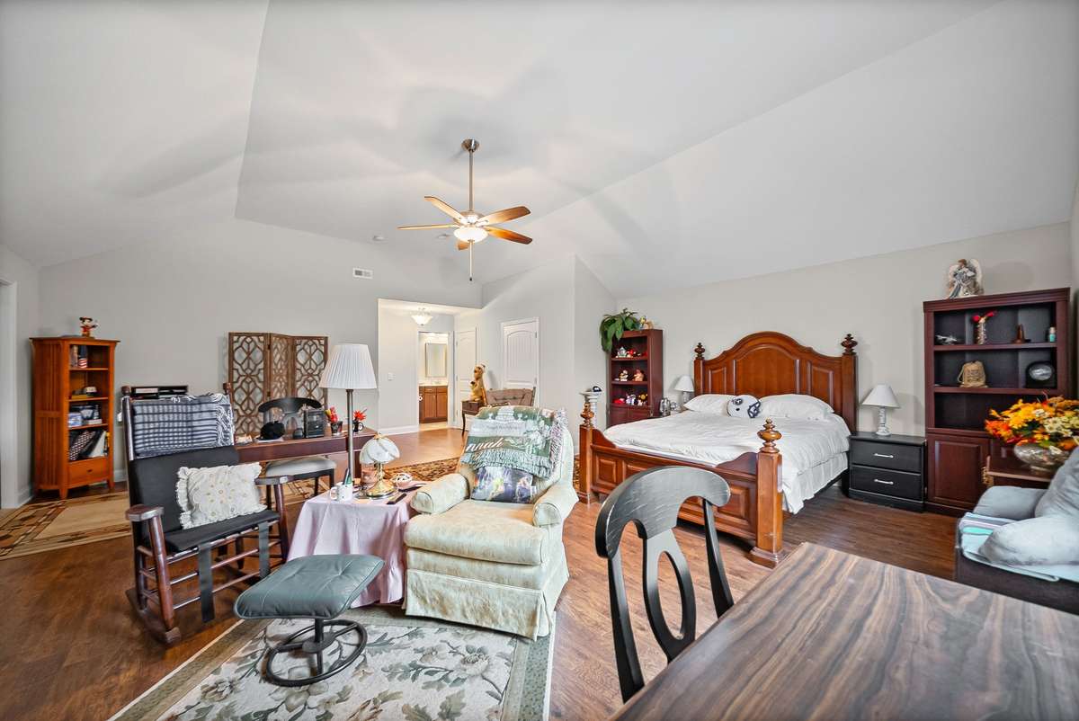 All three generously sized bedrooms are located on the main level. The primary suite offers a large walk- in closet and a low step- in shower for added convenience. Upstairs, the large bonus room is currently used as a fourth bedroom but is perfectly suited for a media room, home office, or hobby space. The second floor also includes a full bath and extensive attic space with potential to be finished into an additional room.
