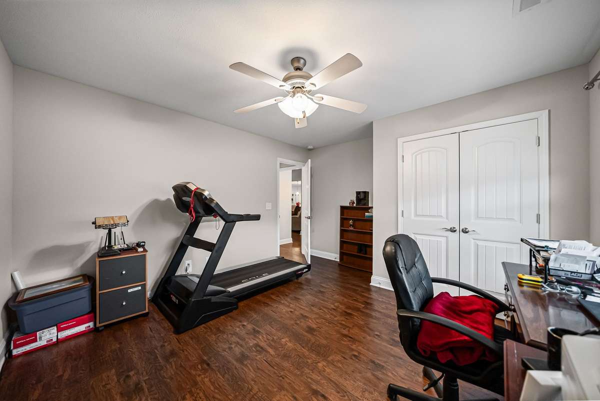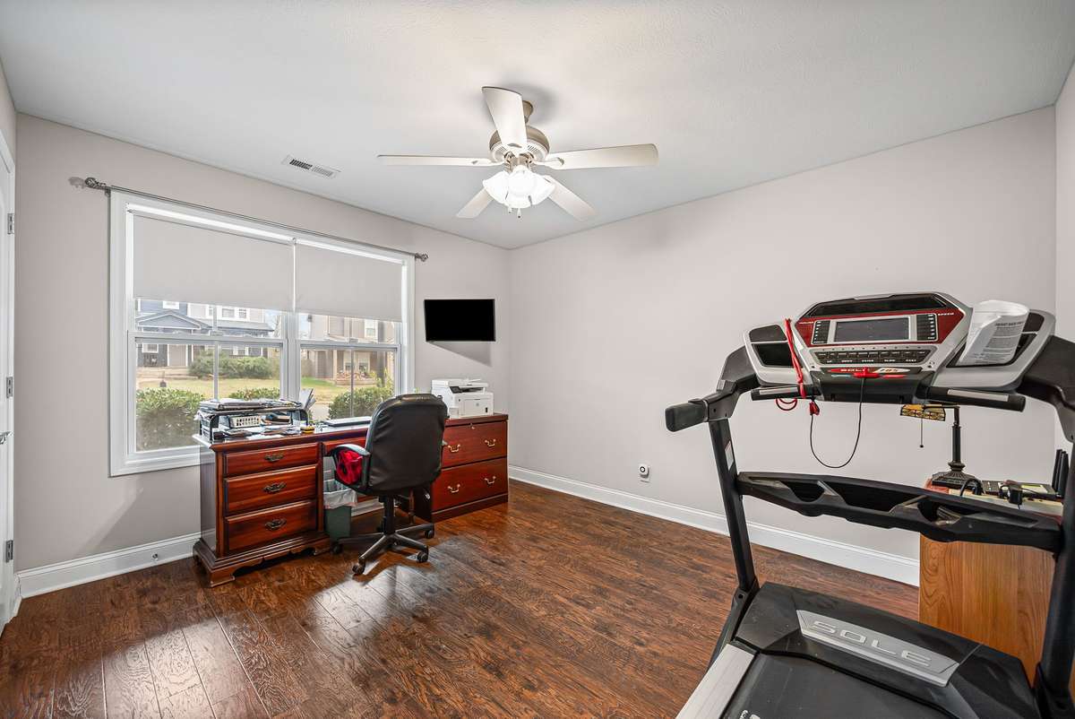 All three generously sized bedrooms are located on the main level. The primary suite offers a large walk- in closet and a low step- in shower for added convenience. Upstairs, the large bonus room is currently used as a fourth bedroom but is perfectly suited for a media room, home office, or hobby space. The second floor also includes a full bath and extensive attic space with potential to be finished into an additional room.