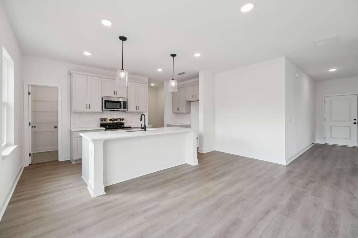Lot 160. Move- in ready with blinds and appliances! This Westmore floorplan by Ashton Woods has plenty of storage space for everyone. This open- concept features the dining area adjacent to the kitchen which includes a large walk- in pantry. The designer- curated finishes from the Artisan Collection showcase sleek black pendant lights, nude tile backsplash, veined quartz counters, taupe cabinets and a single- bowl stainless sink. Enjoy outdoor living with a beautiful wooded view from the covered back porch. The flex room off the foyer is suitable for a home office, formal dining or sitting room. Upstairs you' ll find an oversized primary suite with large walk- in closet as well as three secondary bedrooms, each with tons of closet space! The secondary full bath also features quartz counters with dual vanity. Don' t miss our special holiday promo this weekend only! See link for details.