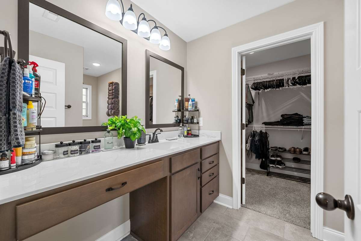 Like- new 2- story home just minutes from multiple Fort Campbell gates! ! The main level has an open layout with a spacious living area, eat- in kitchen, and a built- in PET NOOK! Upstairs features a split bedroom design with a private primary suite, large walk- in closet, and two linen closets for extra storage. Primary bathroom has glam area to get ready and large walk in shower! Laundry room is conveniently located on the second floor. NO backyard neighbors! Large concrete pad outside with a full privacy fence and two gates! Large storage cabinet/ pantry in garage can remain if buyer wants it!