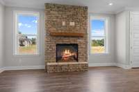 READY NOW – The Ansley Floorplan! This stunning home offers a desirable primary suite on the main level, featuring a spa- like bath with a large walk- in shower, generous walk- in closet, and elegant finishes. The main level also includes a convenient laundry room, two additional bedrooms with a shared full bath, and a bright, open concept living space with a striking stone fireplace as the focal point. The kitchen is designed for both cooking and entertaining, complete with a double oven, oversized island, and abundant storage. Just off the living area, enjoy outdoor living on the covered patio, perfect for relaxing or entertaining year- round. Upstairs, you’ll find a spacious open loft area and FINISHED storage space to suit your needs. ASK ABOUT OUR MORTGAGE CHOICE PROGRAM AND CURRENT INCENTIVE! ( Homesite 189)