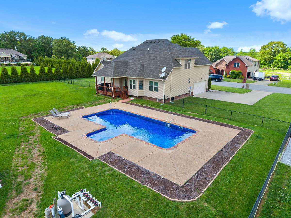 Get ready to fall in love with your ultimate dream retreat! Nestled on over an acre of gorgeous land, this show- stopping home is packed with features that will WOW you at every turn. The gourmet kitchen is a chef’s paradise with double ovens, sparkling granite countertops, and sleek stainless steel appliances—perfect for whipping up feasts or gathering with friends. Imagine enjoying sunny breakfasts in the cozy eat- in kitchen or celebrating life’s milestones in the elegant formal dining room. The primary suite is a true oasis, boasting a spa- inspired bath, an incredible cave shower, and dual vanities for ultimate luxury. Step outside to your very own backyard paradise—swim in the sparkling in- ground saltwater pool, host unforgettable summer parties, or simply unwind in the private, fenced setting. With four spacious bedrooms, a bonus room that easily transforms into a fifth bedroom, and generous closet space, there’s more than enough room for everyone to spread out and enjoy. Guests will love the convenience of a main- level guest room and full bath. And with no HOA, you have the freedom to make this incredible property truly yours. Don’t miss your chance to live the life you’ve always imagined—this home is the one you’ve been waiting for!