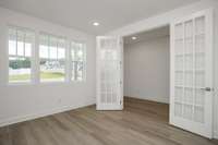 Luxurious Primary Suite: Design your sanctuary upstairs. Choose your TILE, HARDWARE, AND FIXTURES for the deluxe bath, which features double sinks and a walk- in closet.
