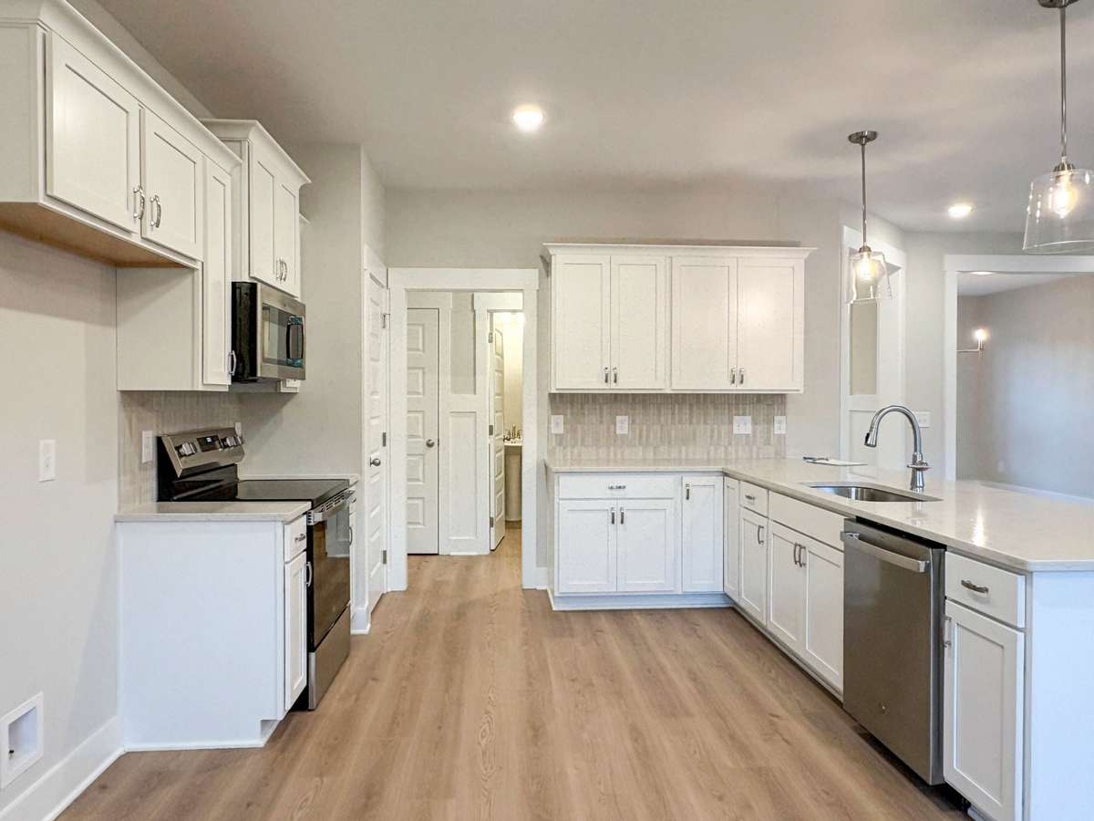 Welcome to 112 Hayden Ln, Lot 220 in the desirable Westfield! This stunning 4- bedroom, 2. 5- bathroom home offers 2, 815 sqft of modern comfort and style on a premium lot. The open floorplan features luxury laminate flooring ( Genoa Oak) , plush " Bird Bath" carpet, and elegant 12x24 tile in key areas. The main level boasts a spacious owner' s suite with en- suite bath, a welcoming great room with a gas fireplace framed by a craftsman mantel, and a gourmet kitchen with white shaker cabinets, sleek quartz countertops, stainless- steel appliances, and a stylish subway tile backsplash.