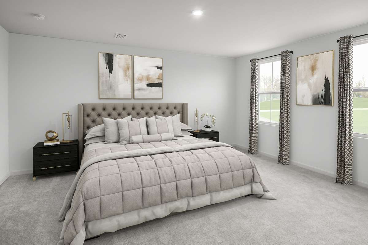 Richland Downs offers amazing new single- family homes in Murfreesboro TN. Now selling. The Hazel floorplan has it all – five bedrooms, a loft & a flex space! Walk in and be wowed by an open concept plan, large kitchen, and dinette. Tucked behind the kitchen is a bedroom and a full bathroom– did someone first floor bedroom? Retreat upstairs to your owner’s suite with en- suite bathroom with dual vanities and a walk- in shower, plus two large walk- in closets! The owner’s suite is also tucked away from the rest of the secondary bedrooms – hello quiet time! All appliances come included ( washer/ dryer too) . Buying with Ryan Homes allows you to personalize your interior so you get everything you want from the lot to the cabinets. You will also get a 1- 2- 10 Year Warranty!
