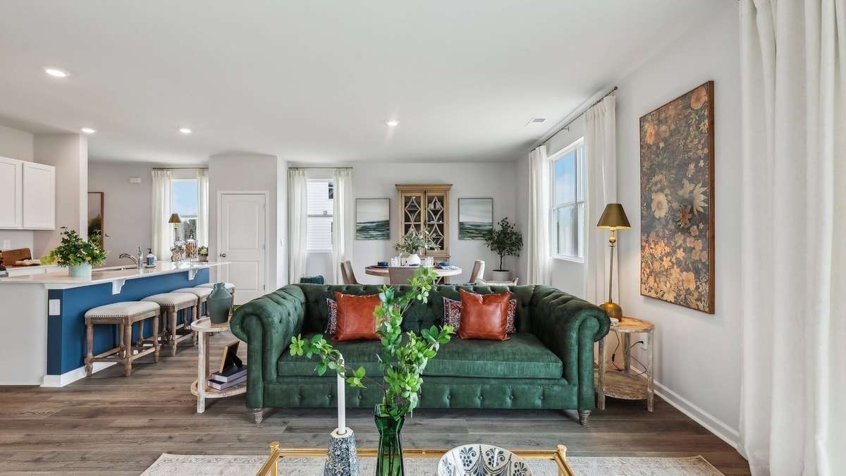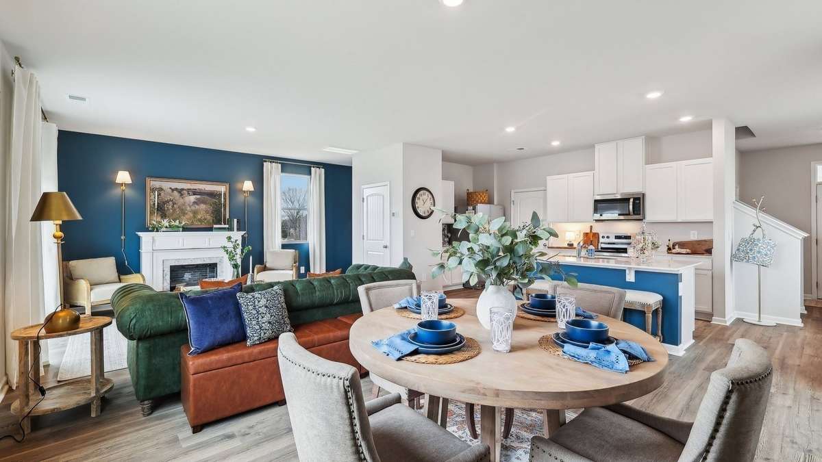 Elston floorplan. Ask about the the incentives. The Elston floorplan offers a spacious 4 bedroom, 2. 5 bath 2174 sq. ft. home and features stylish details like shaker cabinets, stainless- steel appliances, and quartz countertops. The downstairs offers an open concept kitchen and great room, while the upstairs features a loft, 4 bedrooms and an upstairs laundry room, making laundry days a breeze!