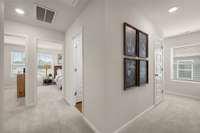 LOT # 43 - Aspen. This new two- story home is a family- friendly haven. The first floor features an open- plan layout among a Great Room for shared moments, a kitchen for adventurous cooks and a dining room for memorable meals. The second floor hosts four restful bedrooms and a spacious owner’s suite with a private bathroom and large walk- in closet. * Images from a furnished model of this home. Actual configuration and features may vary.