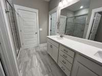 Enjoy one- level living in this 3- bed, 3- bath, 1, 896 sq ft all- brick home in The Paddock at Kennesaw Farms. The kitchen features quartz countertops, upgraded cabinetry, a designer tile backsplash, and stainless appliances, opening to the dining and living areas. Durable laminate flooring enhances the main living spaces, while tile accents the baths and plush carpet adds comfort to bedrooms. The primary suite offers a tiled shower and dual vanities, while two additional bedrooms each include their own full bath, providing comfort and privacy. Neutral designer paint, upgraded finishes, and a 2- car front- entry garage complete the design. The Paddock community provides green space, walkability, and convenience to Station Camp schools, shopping, and major commuter routes. HOA includes lawn maintenance and irrigation for easy living. Ask about our builder incentives!