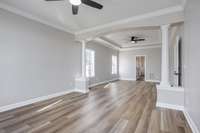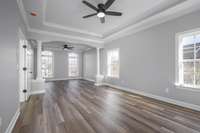 Move in before Christmas! Enjoy the feel of a brand- new home without the wait & stress. This beautifully renovated property showcases soaring ceilings, abundant natural light & an open inviting floor plan. The spacious entry flows seamlessly into the living areas, featuring new luxury vinyl plank flooring downstairs & new tile flooring in all bathrooms. The stunning new primary ensuite includes a soaking tub, an oversized floor- to- ceiling tile shower w glass door, new lighting, mirrors and fixtures- plus his- and- hers walk- in closets & a private sitting area with architectural columns. Fresh interior paint throughout highlights the updated walls, door, ceilings & trim. The gourmet kitchen shines w new stainless KitchenAid appliances- induction cooktop, microwave, oven, dishwasher & refrigerator; quartz countertops; new sink & faucet; tile backsplash; pot filler & abundant cabinetry w soft- close doors & pull- out drawers. The b' fast nook features a charming bay window; the formal dining room displays wainscoting. The living room offers a stone gas FP w a custom mantle & perfect layout for entertaining. Also located on the main level, two secondary bedrooms featuring a Jack- and- Jill w a ship- lap accent wall & a Carrera- tile shower/ tub combo, new vanities, lights, mirror and hardware. Powder room & laundry room are conveniently located on the main level. The vast living space upstairs w all new carpet includes a bonus room with built- in book cases, cabinets & an additional interior expansive area that would be perfect for a game room space. The hobby closet is tucked away & could double as a playroom or arts & crafts room. Also located upstairs are two spacious bedrooms & a gorgeous bathroom w a floor- to- ceiling Carrera- tile shower. Tons of storage! Exterior updates include fresh landscaping, new exterior doors, stained deck, epoxy- painted garage floor, & freshly painted garage w windows & oversized bay. Short walk to pool and neighborhood has two stocked fishing ponds!