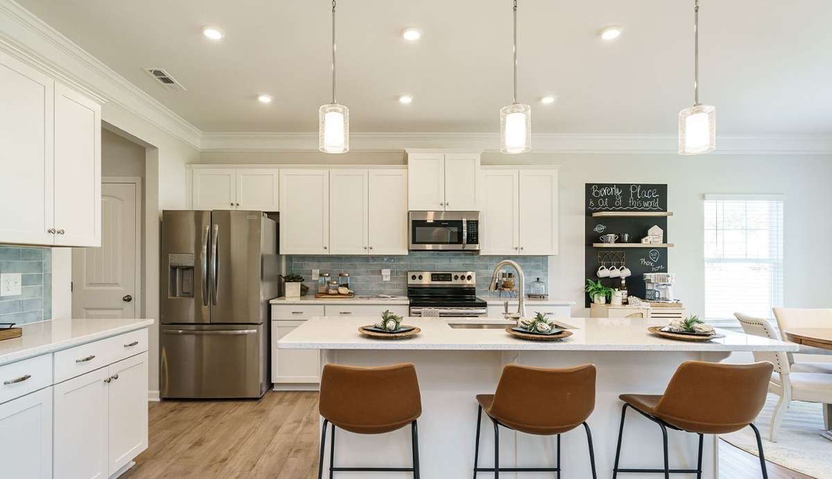 The Lancaster at Hampshire Hills by Smith Douglas Homes. The Lancaster is a ranch home that has it all. Coming into the home, you' ll find a flex room that can be a living room, formal dining room, study, or fourth bedroom, depending on your needs. In the central portion of the house, the family room, kitchen with a large center island, and breakfast nook flow nicely onto the covered back porch. You' ll also find plenty of household storage space and a large functional mud room just off the garage. The owner' s suite boasts a huge walk- in closet, and the secondary bedrooms are given privacy with a separate hallway entrance off the home' s foyer. As a bonus, a bedroom can be added over the garage.