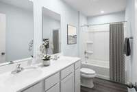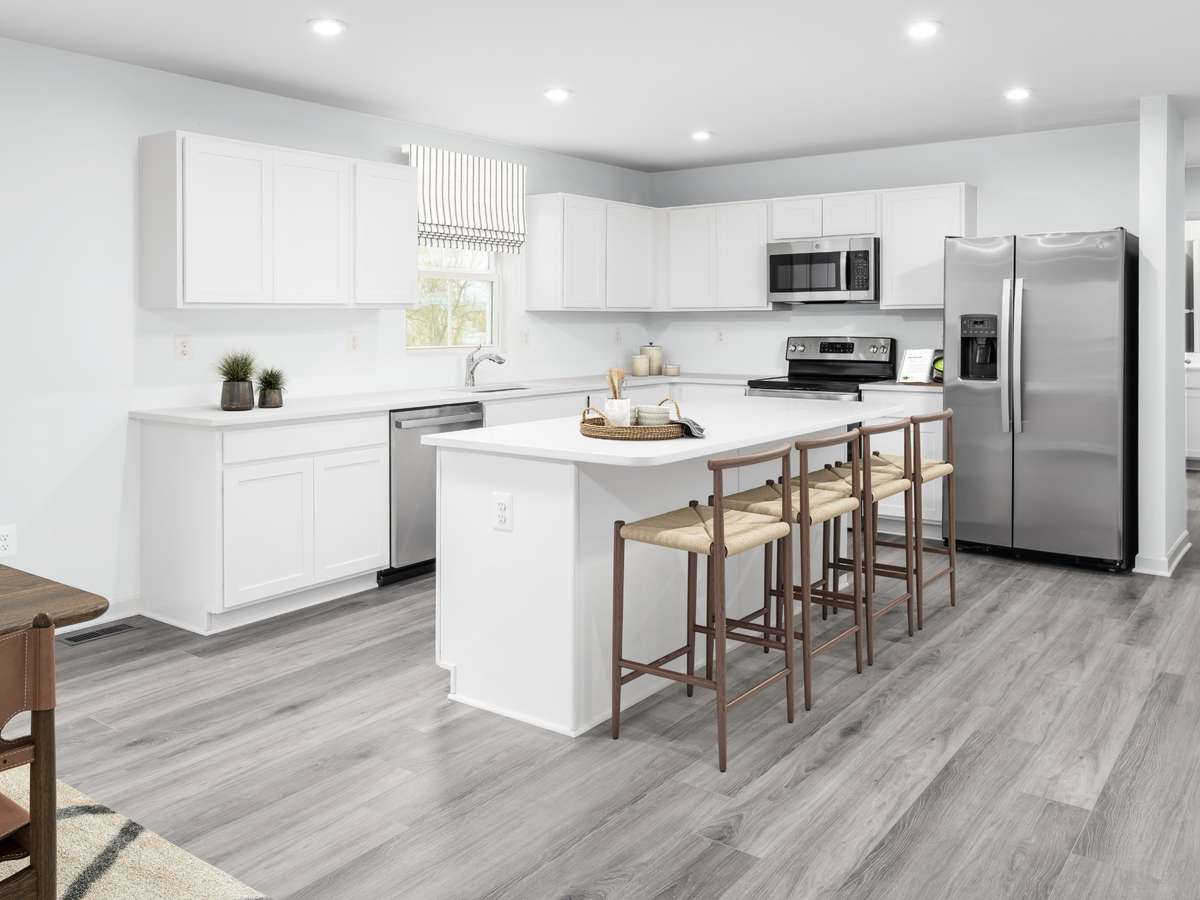 Needing more space than what you have now? The Hazel floorplan will check all of your boxes - and for an affordable price. First floor offers a flex room, first floor bedroom with full bath, an open concept living, dining, and kitchen. Upstairs is your owner' s suite with 2 walk- ins, an en suite bath, three secondary bedrooms, a loft, secondary bath, and a laundry room. Loft space can be converted into a 6th bedroom. All appliances come included in the home ( yes, the fridge, washer & dryer too) . Choose your own finishes! Outside comes included with HardiPlank siding and stone.