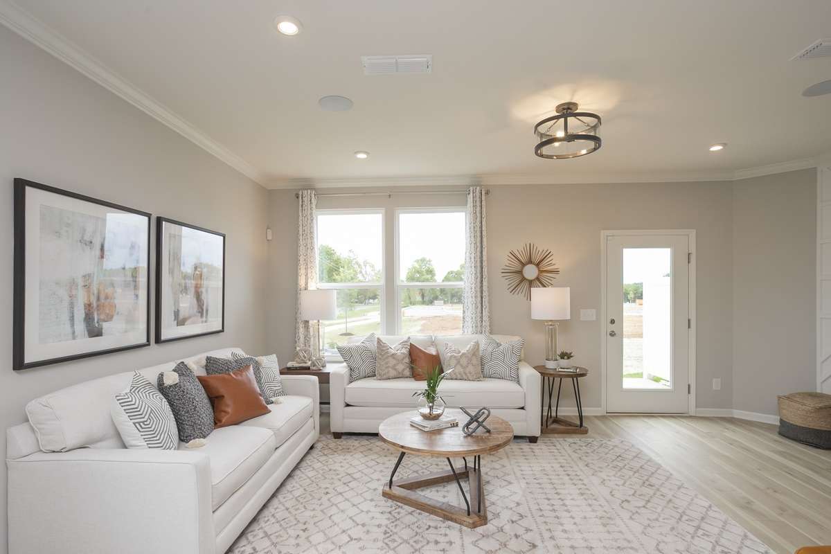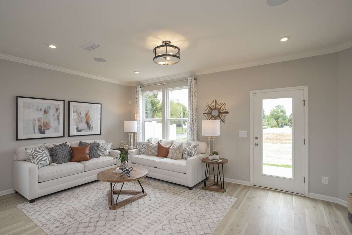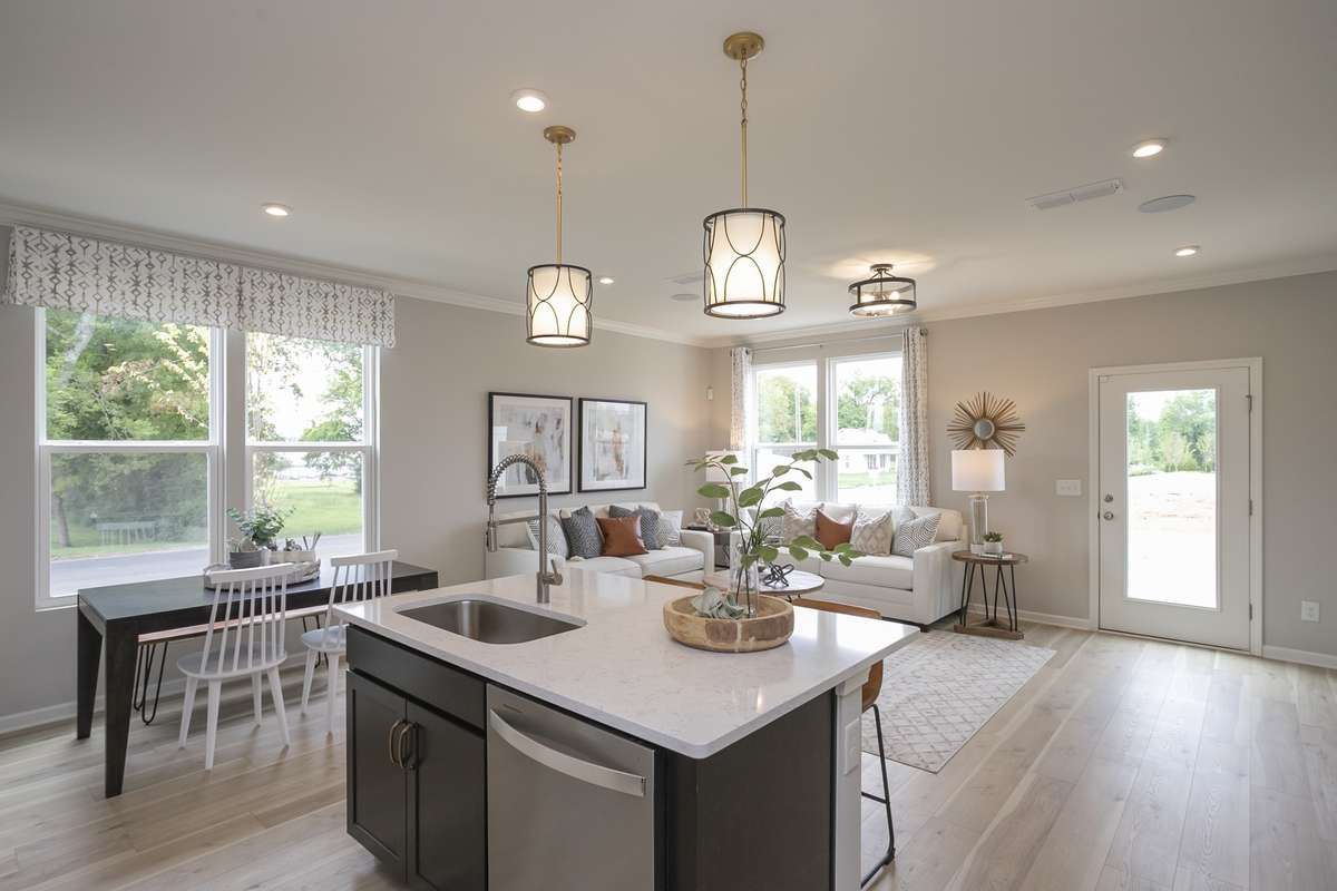 Solid surface floors throughout the main level make cleaning a breeze. Located in Tulip Hills, a Zero Energy Ready community soon to be gated with resort- style amenities—pool, cabana, dog park—just 3 minutes to I- 40, a short10 minutes to the airport, and 20 minutes to Downtown Nashville. Surrounded by shopping, dining, and everyday conveniences. HOA covers landscaping, plus closing cost incentives and a Move- In Ready Package are available. Backed by a multi- level builder warranty. This home is complete and ready for quick closing! Don' t wait this is the perfect opportunity to have an end unit! ( Homesite 19)