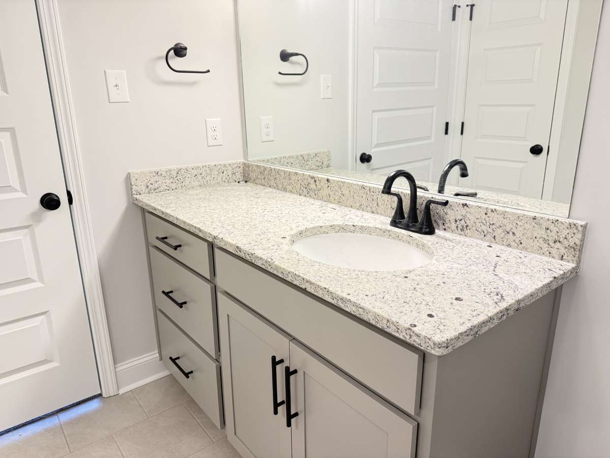 The primary suite is located on the main level and features a well- designed bathroom with dual vanities, a linen closet, and a walk- in closet. Upstairs are two secondary bedrooms, a full bath, and a generous walk- in storage closet, along with attic access. Bedroom 2 is oversized ideal for guests, a home office, or a multipurpose flex space. This plan delivers a comfortable, low- maintenance layout with plenty of storage and separation between living spaces, perfect for a variety of lifestyles.