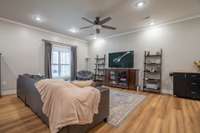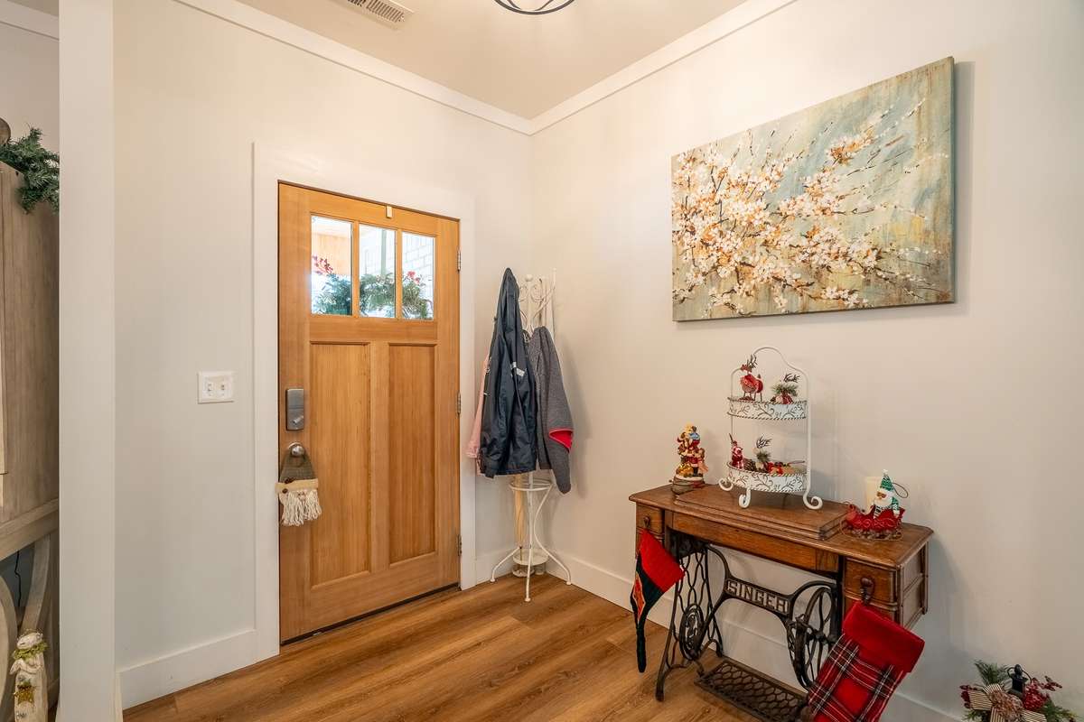 Beautiful white brick home in a convenient location in Killen AL — built in 2022 and completely move- in ready! The main level offers a 3- bed, 2- bath open floor plan featuring vaulted ceilings, a large island, granite countertops, and a cozy gas fireplace. Split bedroom design with a spacious primary suite that includes a step- in tiled shower, soaking tub, and a large walk- in closet.