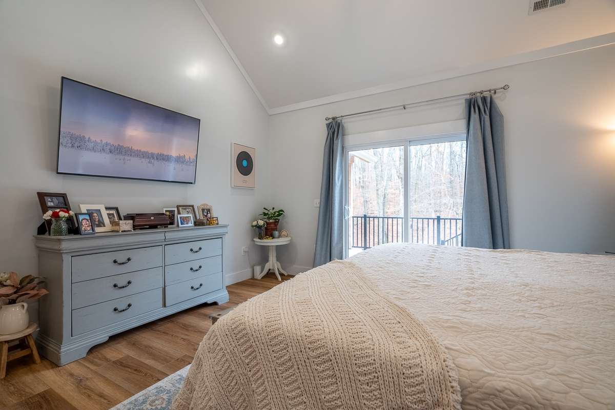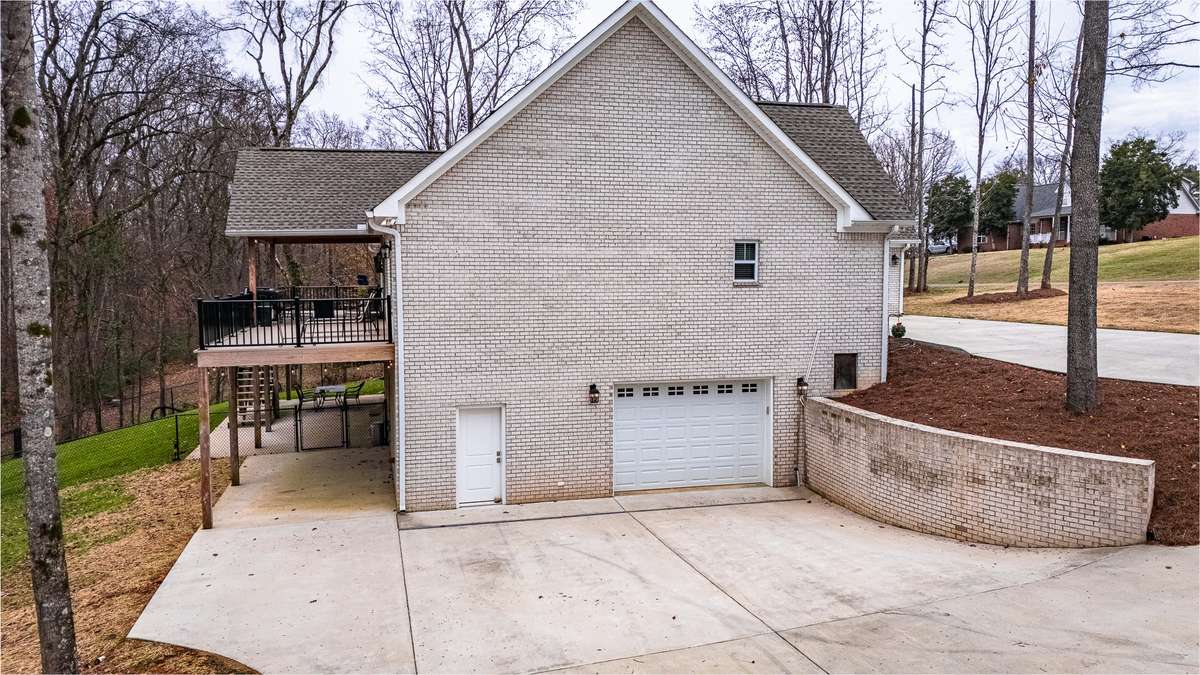 The finished basement in- law suite provides an efficiency kitchen, full bath, and private bedroom — ideal for guests, multigenerational living, or rental potential. Enjoy the outdoors on the spacious deck, perfect for entertaining and soaking in the wooded views. The property also features a large concrete driveway with RV parking, giving you plenty of space for vehicles and guests. The home includes an attached two- car garage on the main level, plus a single- car garage in the basement, offering excellent storage, workshop space, or additional parking options. Call today to schedule your showing — this beautiful home won’t last long!
