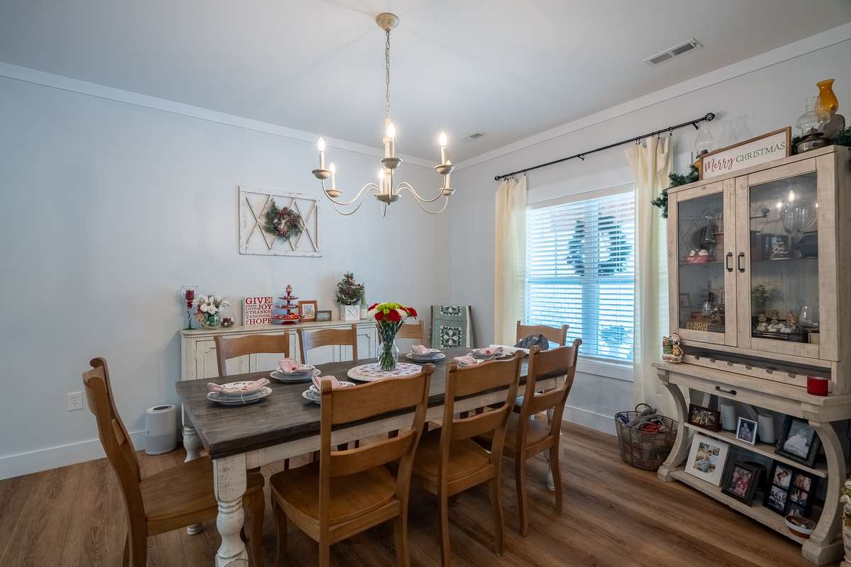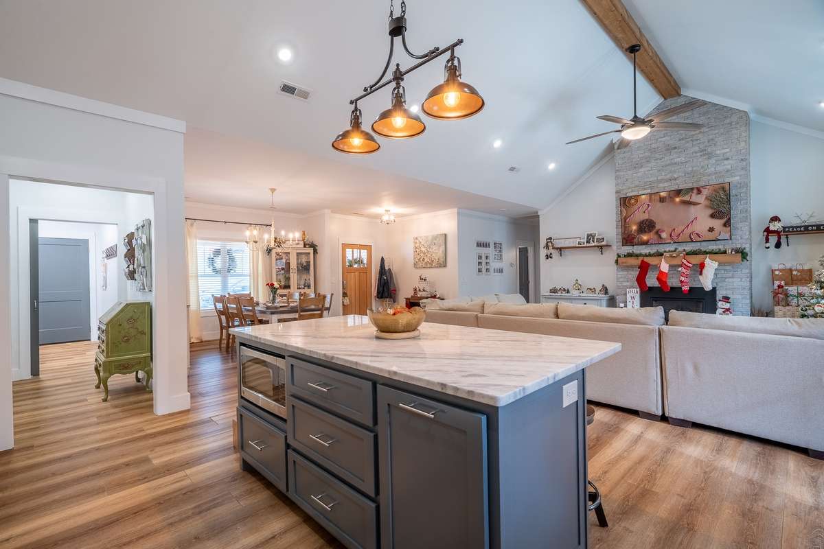 Beautiful white brick home in a convenient location in Killen AL — built in 2022 and completely move- in ready! The main level offers a 3- bed, 2- bath open floor plan featuring vaulted ceilings, a large island, granite countertops, and a cozy gas fireplace. Split bedroom design with a spacious primary suite that includes a step- in tiled shower, soaking tub, and a large walk- in closet.