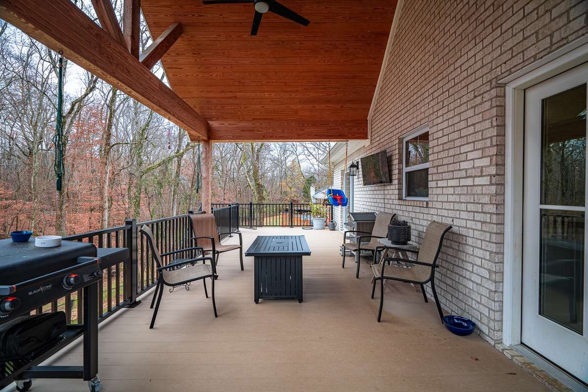 The finished basement in- law suite provides an efficiency kitchen, full bath, and private bedroom — ideal for guests, multigenerational living, or rental potential. Enjoy the outdoors on the spacious deck, perfect for entertaining and soaking in the wooded views. The property also features a large concrete driveway with RV parking, giving you plenty of space for vehicles and guests. The home includes an attached two- car garage on the main level, plus a single- car garage in the basement, offering excellent storage, workshop space, or additional parking options. Call today to schedule your showing — this beautiful home won’t last long!