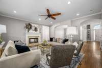 ** PRICED BELOW APPRAISAL!* * Beautiful, brick home on fenced- in corner lot. Newly refinished white kitchen, screened- in back porch with gas fireplace. Beautiful architecture throughout, with brick walls, arched openings and trim. New Paint throughout the house, and new HVAC unit( s) . The home is 4 bedrooms, 3. 5 baths with an eat- in Kitchen, large Dining Room, Study, and Bonus/ Media room. The Owner suite is located downstairs.