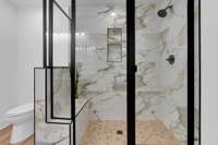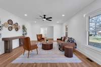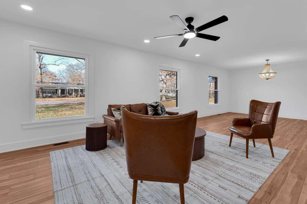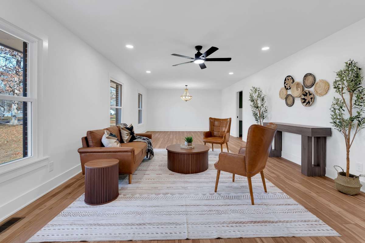 JUST REDUCED PRICE TO $ 469, 000, Don' t miss this spacious one- level home for the price! This warmly renovated 4 bedroom, 2. 5 bath, 2, 700+ sq ft ranch sits on a tranquil shady lot with mature trees, a stunning back deck and screened porch perfect for morning coffee or entertaining. Professionally redone throughout. It features a cozy gas fireplace, a beautiful primary suite with custom tile shower, double vanity and walk- in closet. The kitchen offers new quartz counter tops, an island cooktop and double oven and dishwasher. A smart mudroom and oversized laundry add convenience. A 2- car garage and thoughtful updates everywhere. This home blends comfort, style and function in an ideal location with a concrete driveway.