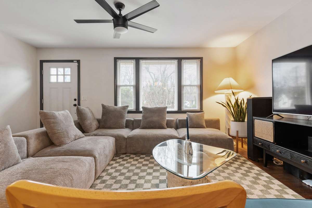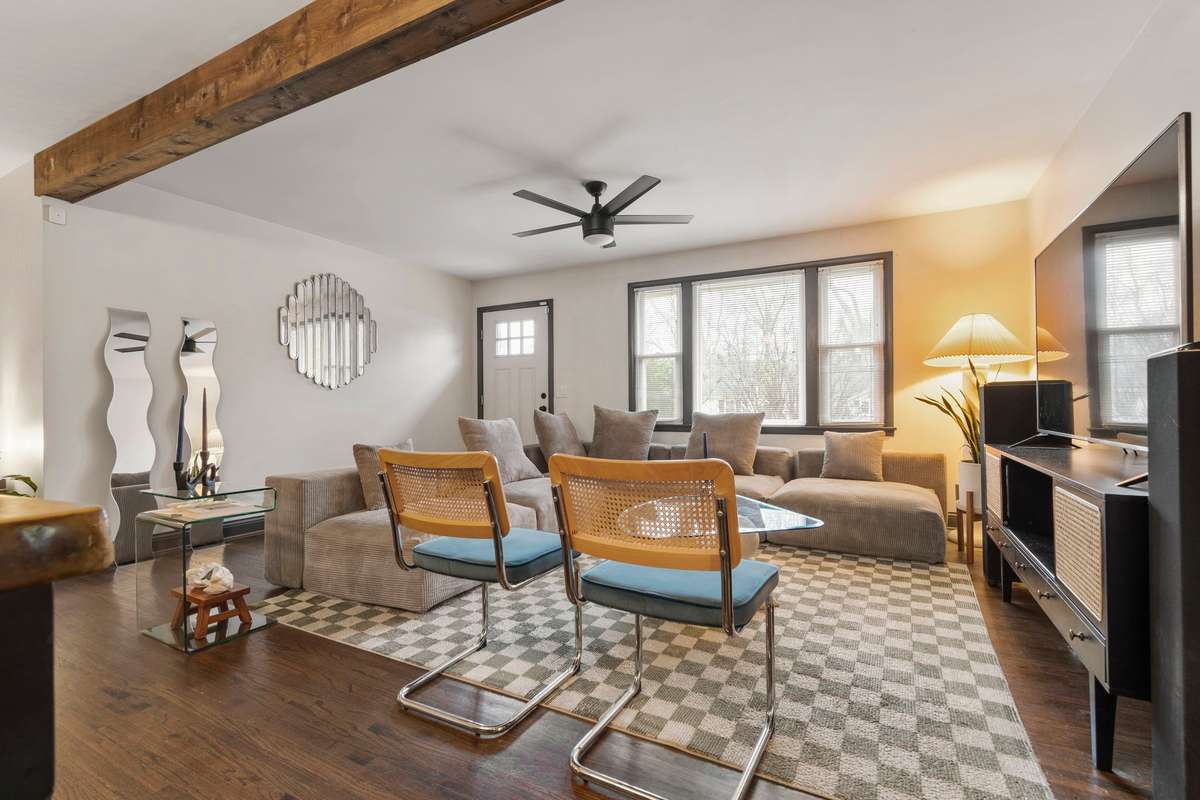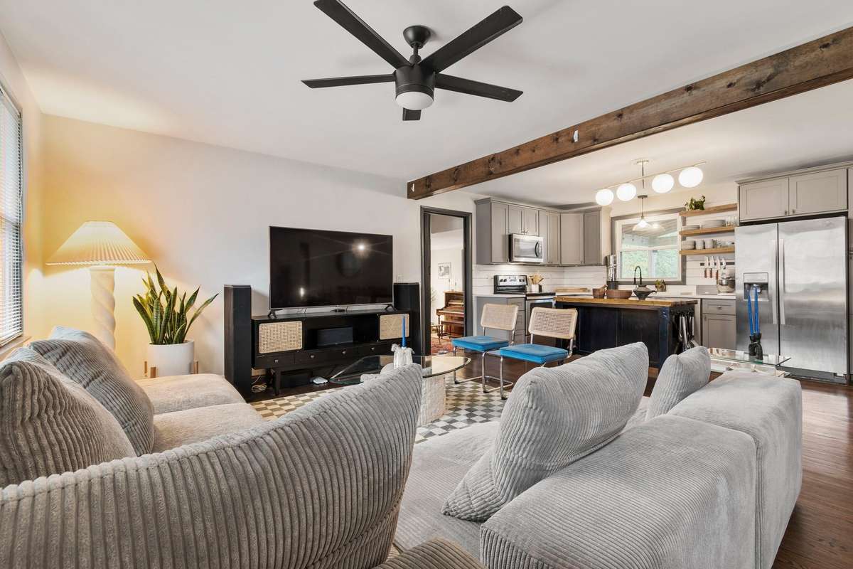 Lovely all brick renovated ranch home in the Crieve Hall area! Hardwood floors throughout, open floor plan with kitchen & dining area open to family room with wood ceiling beams. Large bonus rm/ den opens to fabulous covered patio overlooking back. Great outdoor entertaining space! Very convenient location... NEW roof!