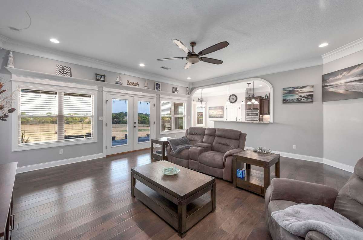 Custom- Built Home by Bill Davis on 3. 7 Acres with Pond – A Must- See! This stunning 4- bedroom, 3- bath home with a 2- car garage offers exceptional craftsmanship and thoughtful design, all set on a picturesque 3. 7- acre lot complete with a pond. Step inside to discover an open, split floor plan with hardwood floors and elegant 5- inch crown molding throughout. The gourmet kitchen features granite countertops, custom cabinetry, a spacious pantry, and is ideal for both everyday living and entertaining. Enjoy the comfort of a separate dining room and an oversized laundry room. Rounded archways add architectural charm, while an unfinished bonus room offers potential for additional space. The beautifully landscaped yard includes a partially fenced backyard with durable steel post and wood fencing, plus a covered back patio—perfect for relaxing or entertaining outdoors. Built with high- quality materials and meticulous attention to detail, this is not your average cookie- cutter home.