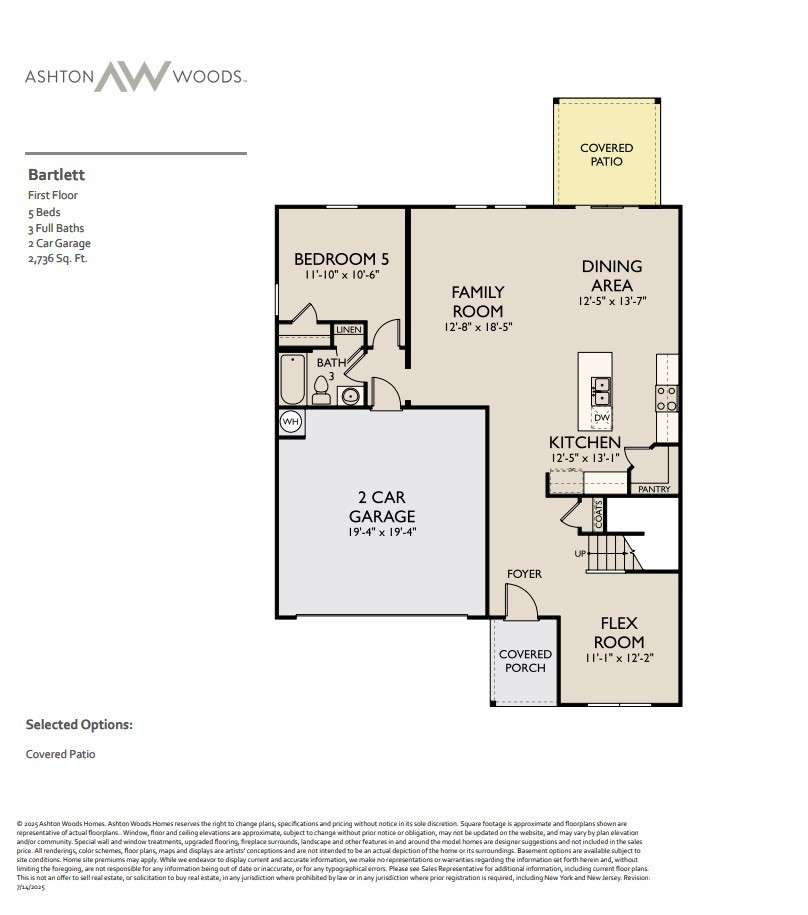 Homesite # 113 - " The Bartlett" - Create memories when you step inside the five- bedroom Bartlett plan. This two- story home features a versatile flex room off the foyer, a covered patio off the dining area, and a bedroom on the main level ideal for guests. The open, designer- curated kitchen overlooks the spacious living room and features professional curated design finishes. Here, you' ll find gorgeous cabinetry, pristine quartz countertops, tile backsplash, and stainless appliances. On the second floor, a large loft area offers space for a media room, play room, or home office. The primary suite has a generous walk- in closet, tiled walk- in shower, and a dual vanity. Upgrades include tray ceiling in the owners suite, and a covered patio. Three secondary bedrooms, a full bathroom, and a laundry room with storage closet complete the second floor. Ask listing agent about current incentives. Photos are of the same floorplan on a different homesite. Design Choices may differ.
